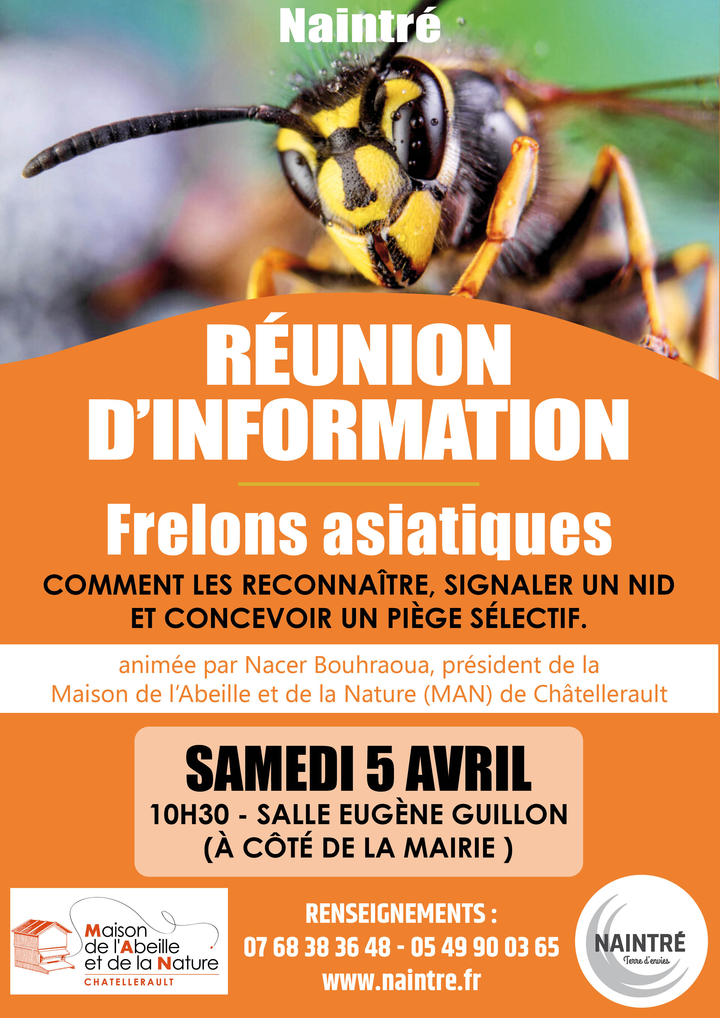 Réunion d'information sur le frelon asiatique le 5 avril 2025 à Naintré Réunion d'information sur le frelon asiatique le 5 avril 2025